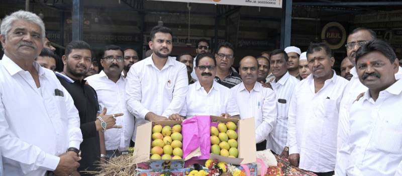 महाराष्ट्र न्यूज वन प्रतिनिधी, कोल्हापूर : कोल्हापूर शेती उत्पन्न बाजार समितीत सोमवारी (३ नोव्हेंबर २०२५) देवगड हापूस आंब्याची आवक झाली. सौद्यात एका डझनच्या आंबा बॉक्सला ४२०० रुपये दर मिळाला. यार्डातील फळ विभागातील जेबी अँड सन्स यांच्या दुकानात प्रकाश शिरसेकर यांच्या देवगड हापूस आंब्यांची आवक झाली. एका डझनाचे पाच बॉक्स होते. फळ व्यापारी आफान बागवान यांनी हे बॉक्स खरेदी केले. बाजार समितीचे सभापती सुर्यकांत पाटील यांच्या हस्ते सौदा झाला. यावेळी बाजार समितीचे उपसभापती राजाराम चव्हाण, संचालक सुयोग वाडकर, बाळासाहेब पाटील, पांडूरंग काशीद, नानासाहेब कांबळे, दिलीप पोवार, सचिव तानाजी दळवी, वसंत पाटील, अनिल पाटील, सोहेल बागवान, इरफान बागवान, शौकत बागवान, नईम बागवान उपस्थित होते.