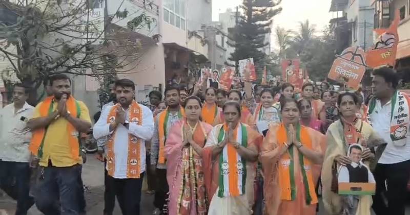 गजानन महाराजनगरात घुमला महायुतीचा नारा ! सत्यजीत जाधव, माधुरी नकाते, यशोदा मोहितेंची प्रचारफेरी उत्साहात