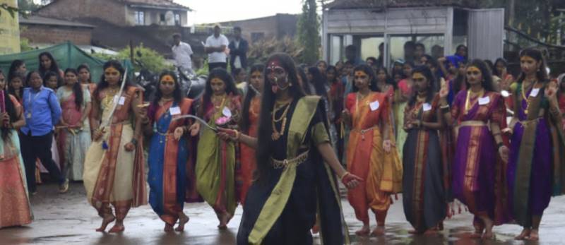 महाराष्ट्र न्यूज वन प्रतिनिधी, कोल्हापूर : नवरात्र उत्सवामधील मुख्य आकर्षण म्हणजे गरबा दांडिया होय. शहीद वीरपत्नी लक्ष्मी महाविद्यालय तिटवे आयोजित केलेल्या 'दांडियामध्ये महाविद्यालयाच्या विद्यार्थिनींनी माहौल निर्माण केला .दम मारिया, अंबे अंबे, ढोल बाजे अशा विविध गाण्यांवर महाविद्यालयाच्या विद्याथिनीनी ठेका धरला होता.