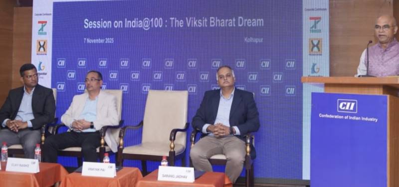 कन्फेडरेशन ऑफ इंडियन इंडस्ट्री सीआयआय - साउथ महाराष्ट्र झोन यांच्यावतीने “ सीआयआय इंडिया @ १०० : दि विकसित भारत ड्रीम” या विषयावर औद्योगिक परिषद हॉटेल पॅव्हिलियन येथे झाली. सीआयआय साउथ महाराष्ट्र झोनल कौन्सिलचे चेअरमन सरंग जाधव यांनी 'जागतिक आव्हानांना संधीमध्ये रूपांतरित करणे' ही आहे असे सांगितले. वॅबटेक इंडिया इंडस्ट्रियलचे वरिष्ठ संचालक विजय इनामके यांनी लोको आणि मेट्रो क्षेत्रात पुरवठादारांसाठी मोठ्या संधी उपलब्ध आहेत. या संधींचा लाभ घेण्यासाठी प्रमाणपत्रे सर्टिफिकेशन आणि गुणवत्ता निकषांचे पालन अत्यावश्यक असल्याचे नमूद केले. घाटगे पाटील इंडस्ट्रीजचे व्यवस्थापकीय संचालक किरण पाटील यांनी मनोगत व्यक्त केले. पहिल्या सत्रात “ जागतिक स्पर्धा - स्थानिक विकास : विकसित भारतासाठी एमएसएमई वाढ ” या विषयावरील चर्चासत्रात समन्वयन एस. बी. रिसेलर्स व्यवस्थापकीय संचालक सचिन शिरगावकर, पॉझिटिव्ह मीटरिंग पंप्सचे सुधीर मुतालिक, ग्रीव्ह्स कॉटनचे प्रशांत नारवडे ,संजय ग्रुपचे प्रसाद कोकिळ आणि मनोरमा इन्फोसोल्युशन्सच्या अश्विनी दाणीगोंड यांनी सहभाग नोंदविला. दुसऱ्या चर्चासत्रात “ भविष्यासाठी तयारी : तंत्रज्ञानाधारित आणि लोककेंद्रित उद्योगनिर्मिती ” या विषयावर चर्चा झाली. या सत्राचे संयोजन एक्स्पर्ट ग्लोबल ग्रुप चे संचालक मुकुंद कुलकर्णी यांनी केले. पॅनेलिस्ट म्हणून एंड्रेस अँड हॉउजरचे नरेंद्र कुलकर्णी, ब्रोझ इंडिया ऑटोमोटिव्ह चे राजेश कुलकर्णी, ॲक्सेंचर टेक्नॉलॉजीजचे श्रीकांत सारडा आणि बी. जी. चितळे डेअरीचे गिरीश चितळे यांनी विचार मांडले. कार्यक्रमाचे सूत्र संचालन वीरेंद्र जाधव यांनी केले. समारोप सत्रात सीआयआय साउथ महाराष्ट्र झोनल कौन्सिलचे उपाध्यक्ष विरेंद्र पाटील यांनी विकसित भारताचे स्वप्न साकार करण्यासाठी उद्योगांनी तंत्रज्ञान, नावीन्य आणि कौशल्य विकास यांचा संगम साधणे अत्यावश्यक आहे.’असे नमूद केले. कार्यक्रमास महाराष्ट्र औद्योगिक विकास महामंडळाचे कार्यकारी अभियंता आय. ए. नाईक, स्मॅकचे व्हाईस चेअरमन भरत जाधव, मॅकचे उपाध्यक्ष विठ्ठल पाटील, कोल्हापूर इंजिनियरिंग असोसिएशनचे उपाध्यक्ष श्रीकांत दुधाणे, सेक्रेटरी कुशल सामाणी, आयआयएफचे अध्यक्ष राहुल पाटील, उपाध्यक्ष सतीश कडुकर, उद्योजक मंगेश पाटील, चंदू राठोड, प्रताप पुराणिक, संजय भगत, श्रावणी मेनन, आदित्य बेडेकर आदी उपस्थित होते.