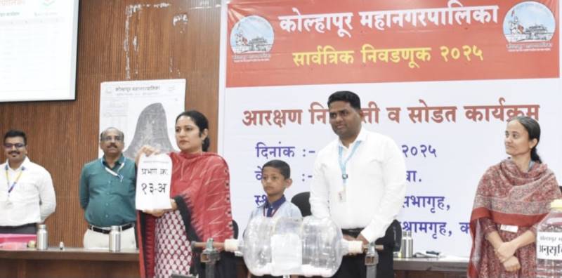 महाराष्ट्र न्यूज वन प्रतिनिधी कोल्हापूर ; कोल्हापूर महानगरपालिकेच्या आगामी निवडणुकीसाठी मंगळवारी 11 सप्टेंबर 2025 रोजी आरक्षण सोडत करण्यात आली. महानगरपालिकेच्या 81 जागांसाठी निवडणूक होणार आहे. यंदा प्रथमच चार सदस्यीय प्रभाग रचना करण्यात आली आहे. एकूण वीस प्रभागात निवडणूक होणार आहे. एक ते 19 प्रभाग चार सदस्यीय आहेत तर वीस नंबरचा प्रभाग हा पाच सदस्यीय आहे. आरक्षण निश्चित झाल्यामुळे महापालिका निवडणुकीच्या अनुषंगाने आता हालचाली वेगावणार आहेत. गेली पाच वर्षे सभागृह असल्यामुळे निवडणुकीसाठी अनेकांनी गुडघ्याला बाशिंग बांधले आहे. दरम्यान महापालिकेच्या प्रशासक के. मंजूलक्ष्मी यांच्या मार्गदर्शनाखाली अतिरिक्त आयुक्त रविकांत अडसूळ, उपआयुक्त परितोष कंकाळ, किरणकुमार धनवाडे, सहायक आयुक्त उज्वला शिंदे, मुख्यलेखापाल संजय सरनाईक, नगरसचिव सुनील बिद्रे, निवडणूक अधीक्षक सुधाकर चलावाड यांनी आरक्षण सोडतीची प्रक्रिया राबवली राबवली. सर्किट हाऊस येथील राजर्षी शाहू सभागृह येथे आरक्षण सोडत निघाली.