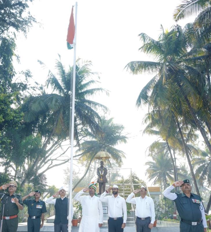महाराष्ट्र न्यूज वन प्रतिनिधी, कोल्हापूर : भारतीय प्रजासत्ताक दिनानिमित्त गोकुळ प्रकल्प येथील कार्यस्थळावर संघाचे चेअरमन नविद मुश्रीफ यांच्या हस्ते ध्वजारोहण झाले. यावेळी चेअरमन मुश्रीफ यांनी जिल्ह्यातील दूध उत्पादक, ग्राहक, वितरक, संघाचे अधिकारी व कर्मचाऱ्यांना ७७ व्या प्रजासत्ताक दिनाच्या शुभेच्छा दिल्या.