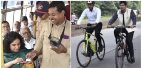 जिल्ह्यात ग्रीन डे उत्साहात ! जिल्हाधिकारी- सीईओ सायकलवरुन ऑफिसला, प्रशासकांचा बसमधून प्रवास !!