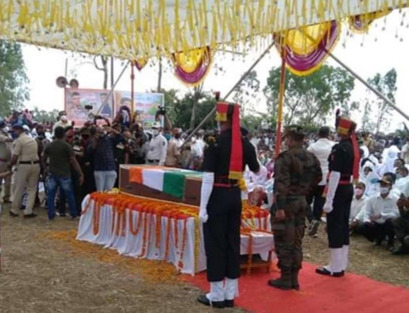 महाराष्ट्र न्यूज 1 प्रतिनिधी, कोल्हापूर : शहीद जवान ऋषीकेश जोंधळे यांच्या पार्थिवावर लष्करी इतमामात बहिरेश्वरवाडी येथे अंत्यसंस्कार झाले. पोलीस आणि लष्कराच्या जवानांच्या तुकडीने हवेमध्ये बंदुकीच्या तीन फैरी झाडून आणि अंतिम बिगुल वाजवून मानवंदना दिली. यानंतर शहीद जवान ऋषीकेश यांचे चुलत बंधू पुंडलिक यांच्या हस्ते अग्नी देऊन अंत्यसंस्कार करण्यात आले.