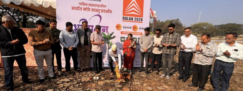 क्रिडाई कोल्हापूर पश्चिम महाराष्ट्रातील बांधकाम व्यावसायिक सर्वोच्च शिखर संघटना असून क्रिडाई कोल्हापूर तर्फे पश्चिम महाराष्ट्रातील सर्वात मोठे बांधकाम व वास्तू विषयक प्रदर्शन (दालन)दि. ३० जानेवारी ते २ फेब्रुवारी २०२६ या दरम्यान महासैनिक दरबार हाॅल ग्राउंड येथे आयोजित करण्यात आले आहे.या प्रदर्शनाचा मंडप उभारणी कार्याचा शुभारंभ क्रिडाई कोल्हापूरचे अध्यक्ष के. पी. खोत यांच्या शुभ हस्ते व दालनचे चेरमन महेश यादव, व्हा. चेरमन आदित्य बेडेकर,समन्वयक निखिल शाह क्रिडाई चे सेक्रेटरी गणेश सावंत, दालन सेक्रेटरी संग्राम दळवी तसेच दालनचे पदाधिकारी सभासद यांच्या उपस्थितीत रविवार दि. 11/01/2026 रोजी संपन्न झाला. क्रिडाई अध्यक्ष सौ व श्री के. पी.खोत यांच्या हस्ते मंडप उभारणी कार्याचे भूमिपूजन करण्यात आले.