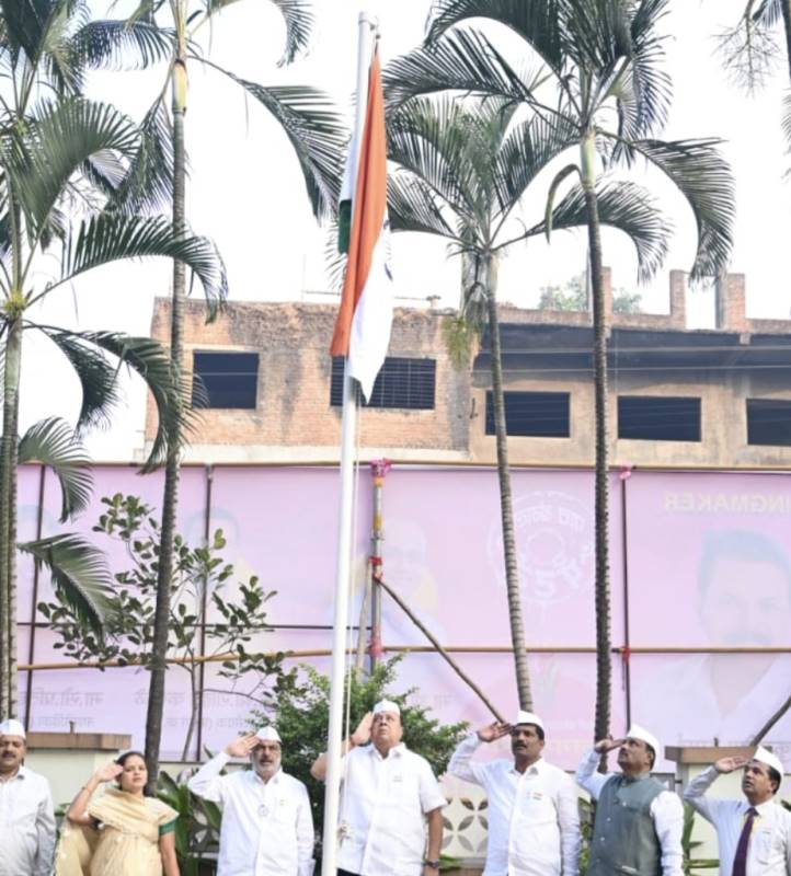 महाराष्ट्र न्यूज वन प्रतिनिधी, कोल्हापूर : कोल्हापूर जिल्हा मध्यवर्ती सहकारी बँकेच्या प्रांगणात ७७ वा भारतीय प्रजासत्ताक दिन बँकेचे अध्यक्ष व मंत्री हसन मुश्रीफ यांच्या हस्ते ध्वजारोहण करण्यात आला. यावेळी बँकेचे संचालक व कोल्हापूर जिल्हा राष्ट्रवादी काँग्रेसचे अध्यक्ष बाबासाहेब पाटील- आसुर्लेकर, संतोष पाटील, संचालिका सौ. स्मिता गवळी, युवराज गवळी, बँकेचे मुख्य कार्यकारी अधिकारी जी. एम. शिंदे, अधिकारी व कर्मचारी उपस्थित होते.