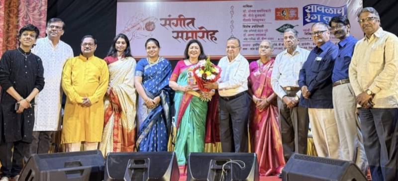 महाराष्ट्र न्यूज वन प्रतिनिधी, कोल्हापूर : रसिकाग्रणी मदन मोहन लोहिया सांस्कृतिक मंचतर्फे आयोजित संगीत संमेलनाचा समारोप झाला. संमेलनाच्या समारोपाच्या दिनी, पद्मश्री माणिक वर्मा यांच्या जन्मशताब्दी वर्षाच्या निमित्ताने स्वर सांगाती आयोजित सावळाच रंग तुझा या या कार्यक्रमाचे आयोजन केले होते. या कार्यक्रमात माणिक वर्मांच्या गाण्यांच्या कार्यक्रमाला रसिकांनी उत्स्फूर्त प्रतिसाद दिला. रविवारी संध्याकाळी संस्थेच्या राम गणेश गडकरी सभागृहात पार पडलेल्या या कार्यक्रमाला त्यांच्या कन्या ख्यातनाम अभिनेत्री वंदना गुप्ते यांच्या उपस्थितीने रसिकांना भुरळ पाडली.